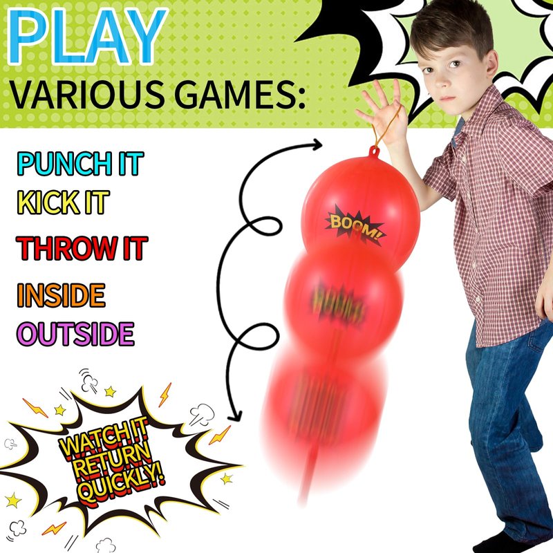 - Fun ball games: these colorful punch balls can be used for a variety of punching exercises to develop hand and eye coordination, and you and your child are sure to have fun.