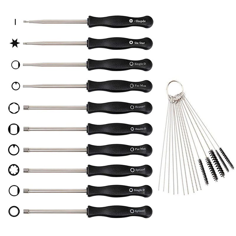 - Equipped with 10 different carburetor adjusting tool screwdrivers including: 21 Teeth Splined + 7 Teeth Splined + Single D + Small Head Single D + Double D + Pac Man + Small Head Pac Man + Hexagon + Shapde + Six Star and carburetor cleaning tools. Easy to adjust your 2 cycle small engine carb.Outside diameter: 7/32 inch; Overall length: 6-1/8 inch.(metal pole: 3 inch. plastic handle: 3-1/8 inch)