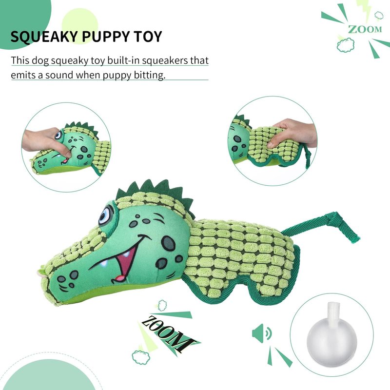 LIZHOUMIL 1PACK Squeaky Dog Toy-Soft Plush Chew Toys with Squeakers in Green Crocodile Shape-Durable Stuffed Dog Toys for Teeth Cleaning,for Puppy,Small,Meduim Dogs