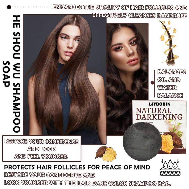 LJYBoBin 3PCS Hair Darkening Shampoo Bar,Dark Shampoo Bar for Gray Hair,Shampoo Soap for Men & Women