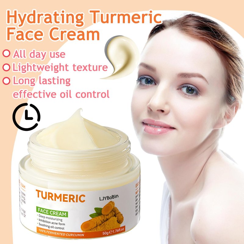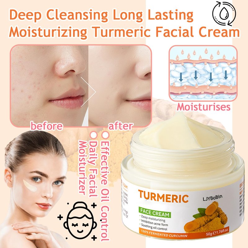 LJYBoBin Hydrating Turmeric Face Cream,Deep Cleansing Long Lasting Moisturizing Turmeric Facial Cream,Daily Non-sticky Face Moisturizer for Face & Body