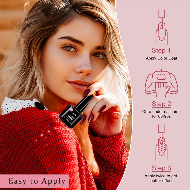 - Easy to Use & Long-Lasting: 6 colors gel polish set with detailed gel manicure instructions. Apply base coat after polishing the nail surface, then apply gel in all seasonal colors, and finally apply gel top coat for a perfect manicure. Don't forget to cure under UV/LED light for 60-90S at every step. Correct operation can keep your nails shiny for up to 28 days (4 weeks). NOTE: Requires primer and topcoat and lamp cure time