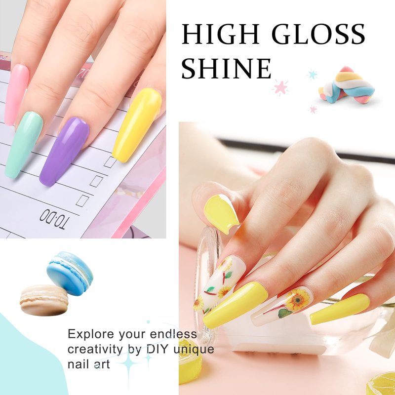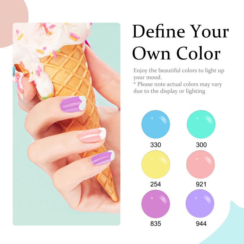 - Easy to Use & Long-Lasting: 6 colors gel polish set with detailed gel manicure instructions. Apply base coat after polishing the nail surface, then apply gel in all seasonal colors, and finally apply gel top coat for a perfect manicure. Don't forget to cure under UV/LED light for 60-90S at every step. Correct operation can keep your nails shiny for up to 28 days (4 weeks). NOTE: Requires primer and topcoat and lamp cure time