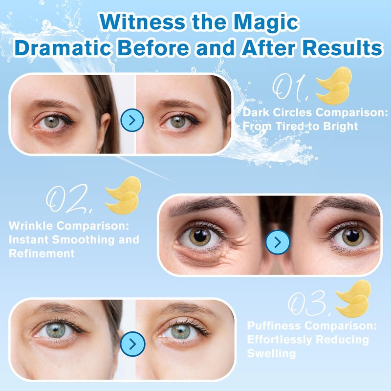 - 【Safe and Effective Formula】- Formulated with top-quality ingredients such as collagen, 24K nano gold, hyaluronic acid, and natural plant extracts, our eye gel patches provide deep hydration and soothing care. These under eye masks are safe and effective, acting as an excellent dark circles under eye treatment for women.