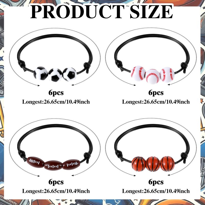 - 【Premium Materials】: We use quality waxed thread and resin materials to ensure the sports party favors bracelets are sturdy. These materials are not only wear-resistant but also fade-resistant, offering great value for your investment