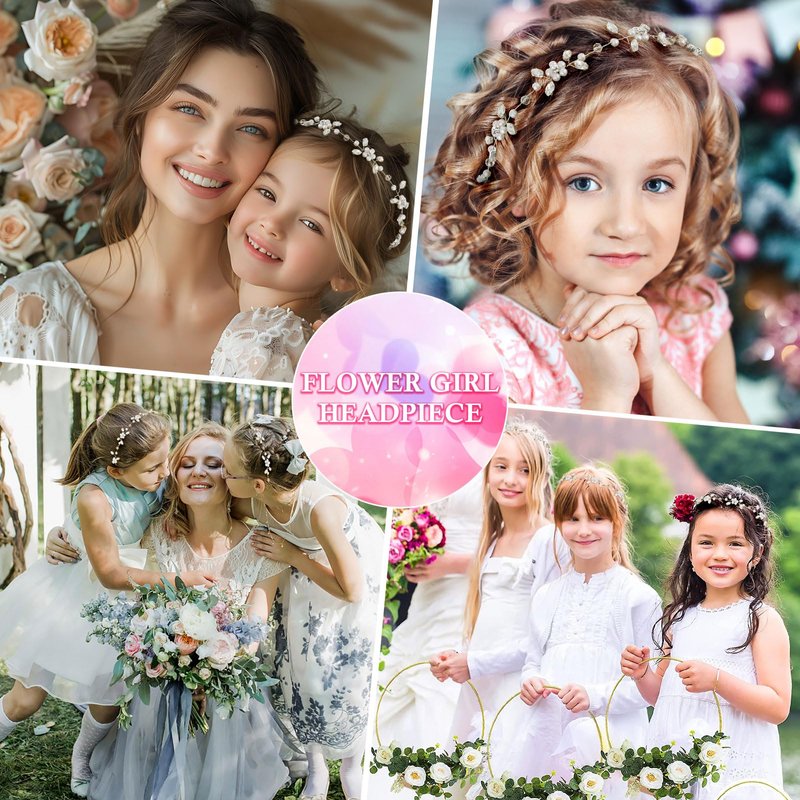 - 【Wide Application】The end of the flower girl headband for wedding is a round design, which will not hurt the scalp. Whether you have thick hair, fine hair, short hair, or long hair, there are many ways to use it. It can be used as a headdress on the forehead, or as a headband, or above the bun, etc.