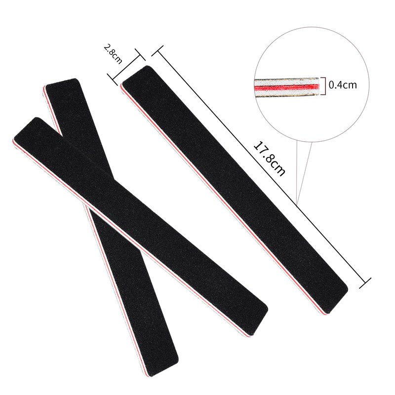 - This double-sided rectangle nail file is a must-have for nail care. It includes 20 pack black nail files, with one side featuring a coarse grit of 100 for grinding hard nails or toenails, and the other side with a finer grit of 180 for delicate modifications.