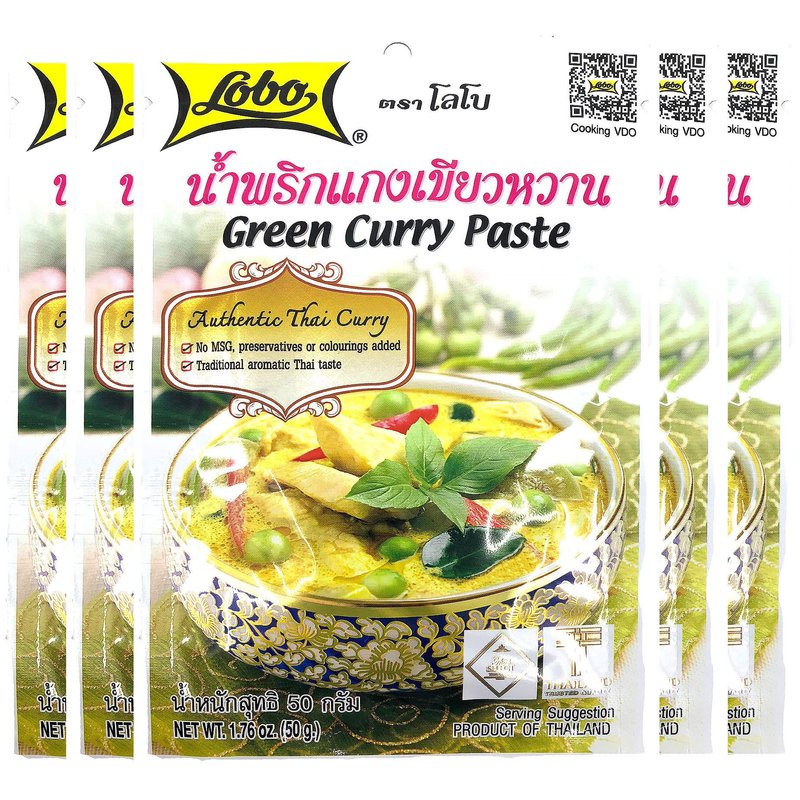Lobo Thai Green Curry Paste - No MSG, No Preservatives, No Artificial Colors (Pack of 5)