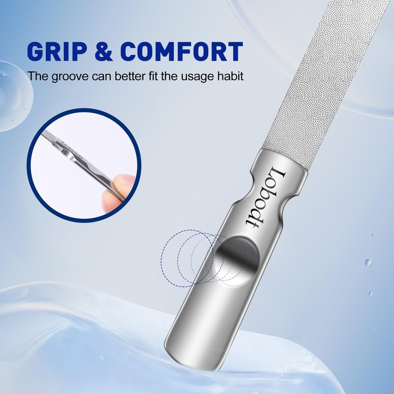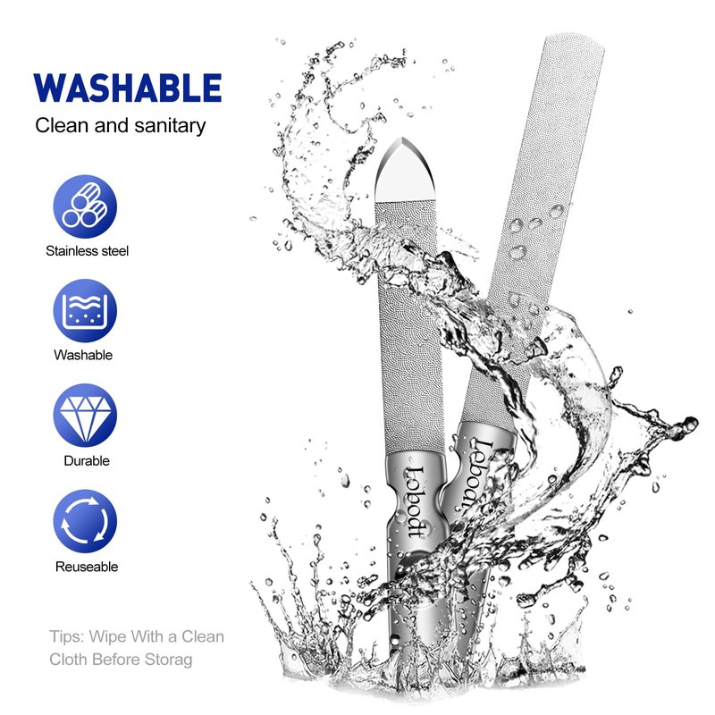 - [Safe Double-Sided Design]:Double-sided textures design,one fine surface and one rough surface .with the front side used for precise trimming and smoothing of the nail surface, and the back side used for quick removal of thick nails and filing of nail edges and the fine tip can also be used for cleaning nails and making your nails beautiful.
