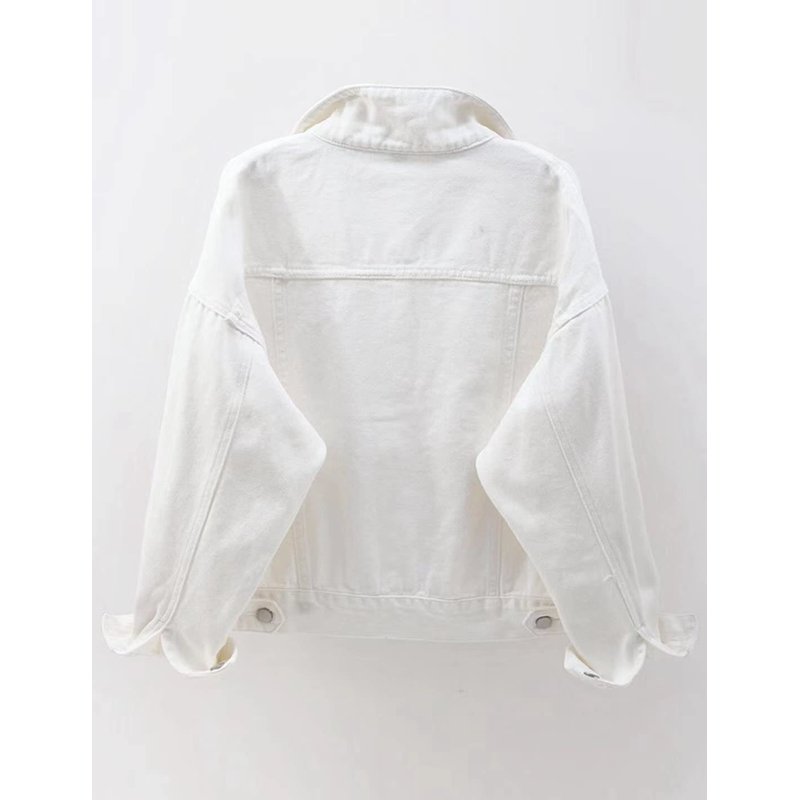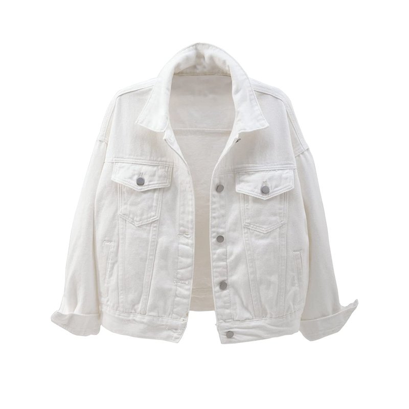 Locachy Women's Casual Denim Jacket Solid Color Basic Long Sleeve Jean Jacket Coat White M