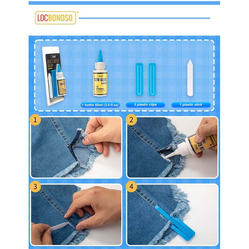LOCBONDSO 1 Min Fast Dry Sew Glue Liquid Quick Bonding Reinforcing Fabric Adhesives DIY Speedy Fix for Denim Cotton Flannel Clothes Tent Curtain Leather Sofa Cover Polyester Gloves Doll Repair