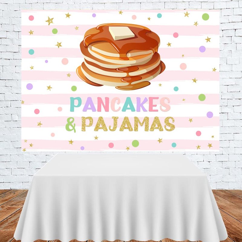 Lofaris Pancakes and Pajamas Birthday Party Backdrop Pink Stripes Colorful Confetti Sweet Girls Birthday Background Slumber Spa Sleepover Party Decor Cake Table Banner 7x5ft