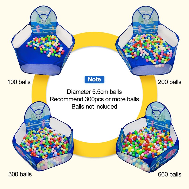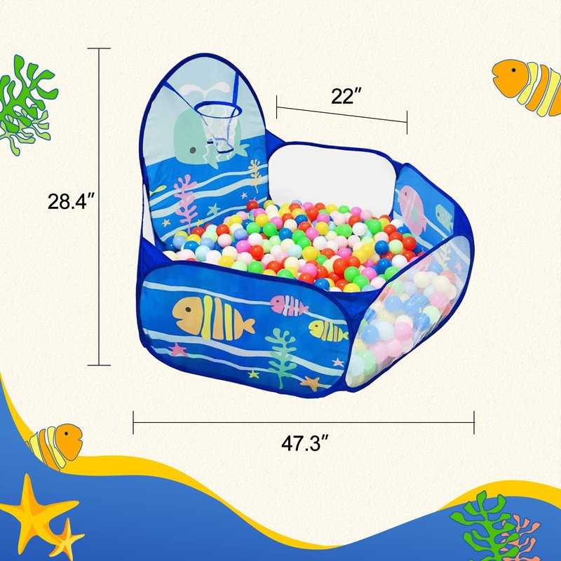LOJETON Kids Ball Pit, Pop Up Children Play Tent, Toddler Ball Pool Baby Crawl Playpen with Basketball Hoop, Portable Toys Gifts for Girls Boys - Balls Not Included, 4ft/120cm, Ocean