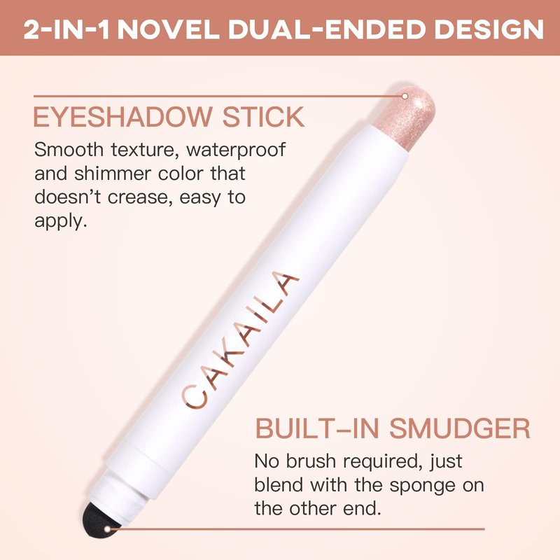 - 【2-in-1 Cream Eyeshadow Stick】Unique double-headed design with the shadow on one end and the sponge smudger on the other. Both ends have caps. Lightweight and convenient, easy to carry out. The soft creamy texture that is delicate and skin friendly, goes on smoothly like silk without clumping, jumping or smudging. Waterproof and sweatproof for long-lasting wear.