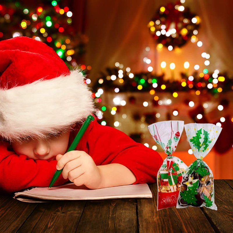 • Package Included: 200 pieces Christmas cellophane bags ( 4 styles, 50 pieces each style ) and 240 pieces twist ties, available for multiple Xmas party to use