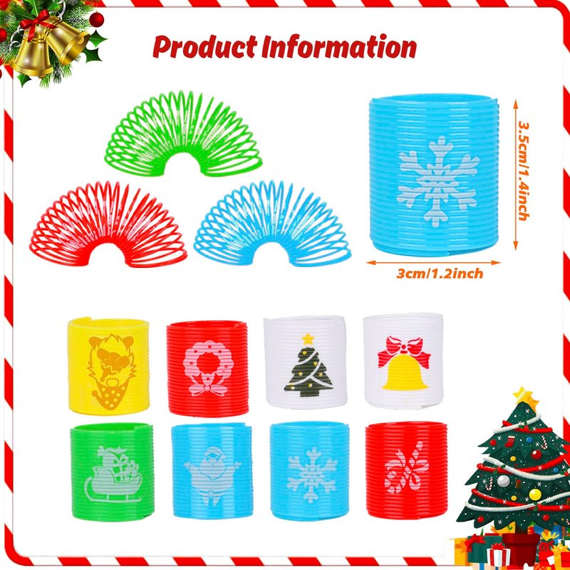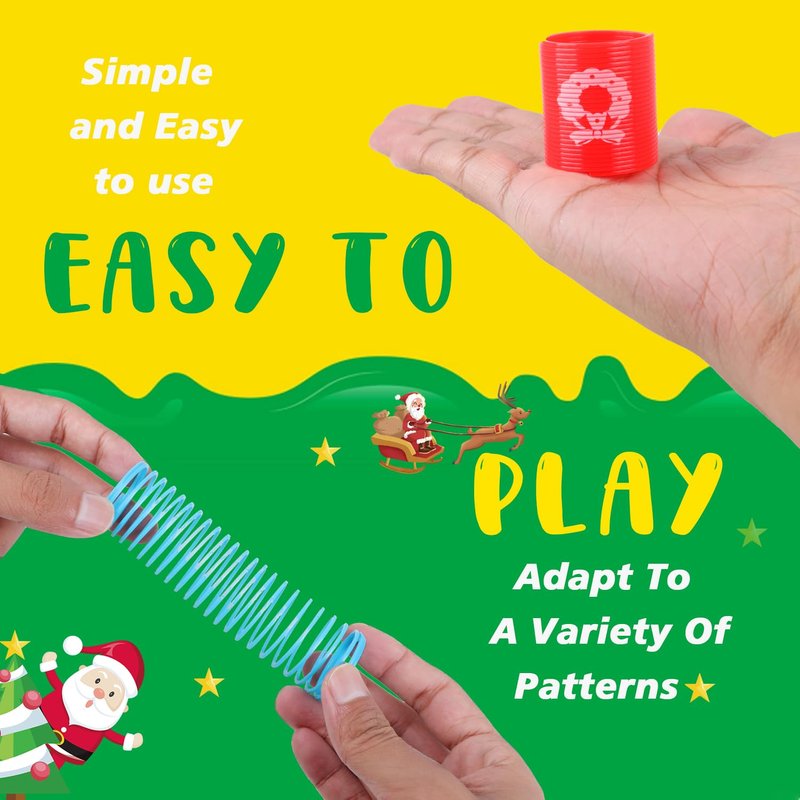 - Value Pack: You will get 48pcs Christmas coil springs in 8 Christmas pattern ( Santa Claus, bells, candy cane, wreaths, snowflakes, gnome, sleds, Christmas trees) with bright colors. These spring toys are fun toys for adults and children to meet entertainment needs