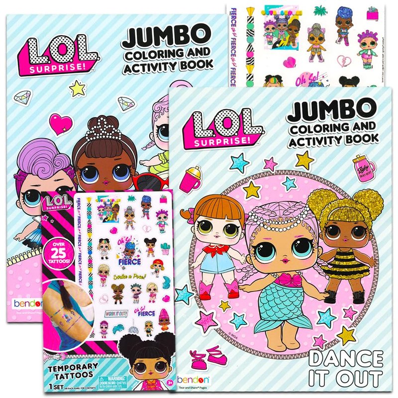 Lol Dolls Coloring Books Party Set -- Bundle Includes 2 Lol Dolls Books and Lol Temporary Tattoos (Party Supplies). Includes 2 Lol Dolls coloring books filled with activities, games, puzzles and more. Includes a pack of 25 Lol temporary tattoos -- fun, fast to apply, and easy to remove. FD&C approved ingredients. Made in the USA. Perfect as Lol Dolls party supplies, party favors, decorations or just for fun. Officially licensed Lol Dolls coloring books.
