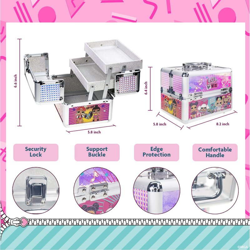 TOWNLEY GIRL L.O.L. SURPRISE! BEAUTY MAKEUP TRAIN CASE SET Our L.O.L Surprise Make up cosmetic set is so much fun, your girls will have a blast showing their sparkly style! with lip glosses, Eye Shimmer and Cheek Shimmer with Brushes in a super cool carrying case adorned with everyone's favorite L.O.L characters, this kit is sure to be a hit with your children. See bullets and images for more information.Girls just want to have fun - and what's more fun than beauty kits for girls? Our beauty kits are the all-in-one solution to every girl's beauty needs. They're especially perfect for birthday parties and special occasions! Create fun and coordinated looks with our beauty kits for girls. KIT INCLUDES : 3 Brushes For Lip, Eye And Cheek. 2 Glittery Toe Spacers. 4 Peelable Nail Polishes: Violet Shimmer, Orange Shimmer, Pink Shimmer, Green Shimmer (bubble Gum Scented). 1 L.O.L Train Case. 1 L.O.L Nail File. 2 Pleather Knotted Hair Bows. 1 Sequin Hair Bow W/ L.O.L Puffy Icon. 2 Scrunchies W/ Glittery, Puffy L.O.L Icon. 1 Glittery Headband W/ Bow and Puffy, L.O.L Icon. 3 Bobby Pins W/ Puffy, Glittery L.O.L Icon. 15 Colorful Glittery, Bobby Pins. 2 Snap Hair Clips W/ Puffy, L.O.L Icon. 20 Colorful, Elastic Hair Ties on Clip. 1 Glittery Face/eye/lip Pencil. 2 Cheek Shimmer: Pink and Light Pink. 5 Eye Shimmers: Lavender, Turquoise, Green, Light Yellow, And Pink. 9 Lip Gloss: Pink Shimmer, Rose Shimmer, Light Purple Shimmer, Yellow Glitter, Peach Shimmer, Dark Purple Glitter, Red Shimmer, Light Purple Glitter, Pink Glitter (Cotton Candy Flavor).. MAKE YOUR LITTLE GIRL FEEL LIKE A PRINCESS with TOWNLEY GIRL KIDS COMPACT MAKEUP SET. LITTLE GIRL COMPACT MAKEUP KIT IS A REAL MAKEUP SET TO DRESS UP. MADE OF HIGH QUALITY NONTOXIC AND WASHABLE INGREDIENTS!. WASHABLE AND EASY TO REMOVE. MY FIRST PRETEND MAKE UP GIFTS.