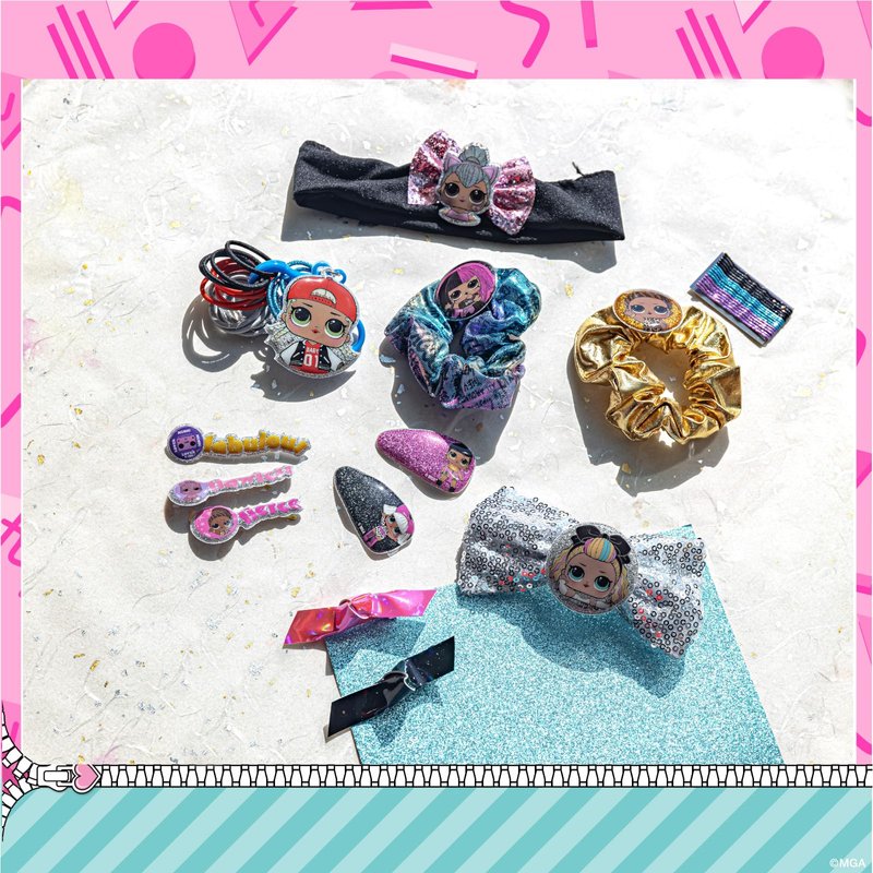 - KIT INCLUDES : 3 Brushes For Lip, Eye & Cheek. 2 Toe Spacers. 4 Nail Polishes, 1 L.O.L Train Case. 1 L.O.L Nail File. 2 Hair Bows. 1 Sequin Hair Bow W/ L.O.L Puffy Icon. 2 Scrunchies W/ Glittery Puffy L.O.L Icon. 1 Headband W/ Bow and Puffy L.O.L Icon. 3 Bobby Pins W/ Puffy Glittery L.O.L Icon. 15 Colorful Glittery Bobby Pins. 2 Snap Hair Clips W/ Puffy L.O.L Icon. 20 Hair Ties on Clip. 1 Glittery Face/eye/lip Pencil. 2 Cheek Shimmer, 5 Eye Shimmers, 9 Lip Gloss and more! See Description.