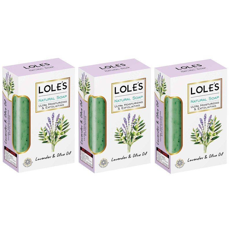 LOLE'S Luxury Pure Natural Soap, Lavender and Olive Oil Beauty Soap Bar, Ultra Moisturizing, Gentle Exfoliating, Face Body Care, Vitamin E, Fresh Touch, LOLES Pack of 3 (5.2 Ounce Each)