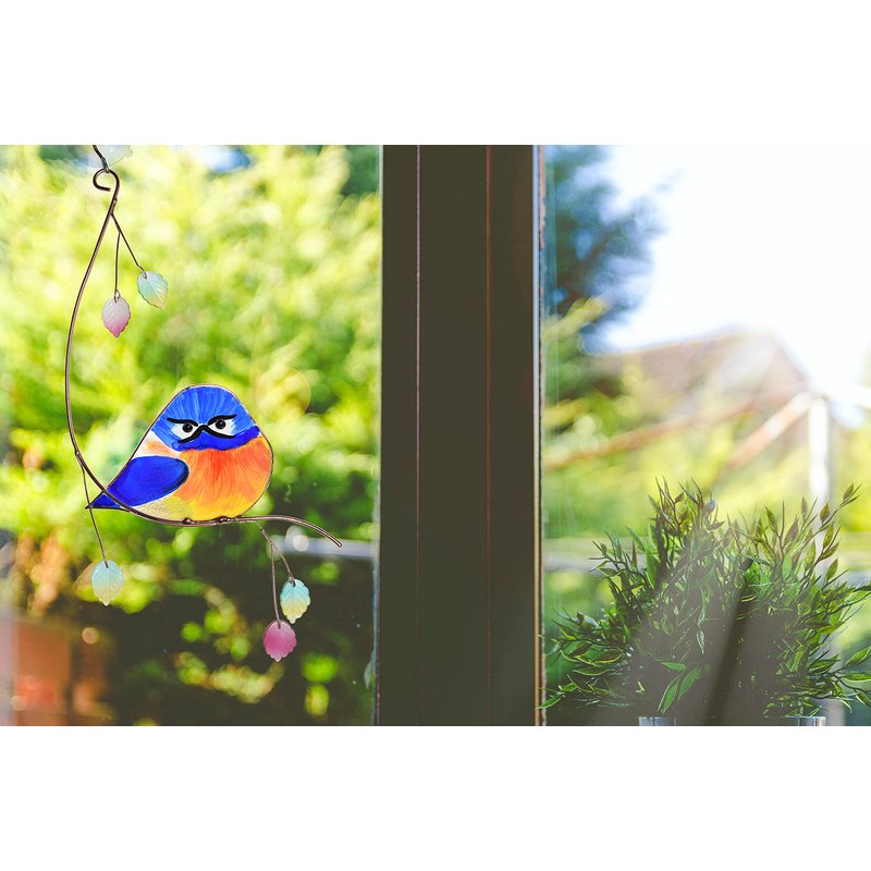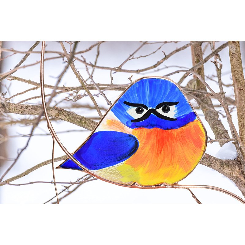 Lolitarcrafts Grumpy Owl Stained Glass Suncatcher Bluebird Stained Window Painting Bird Hanging