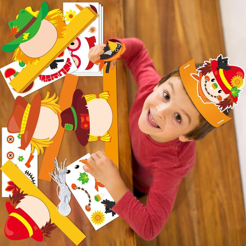 - 【Durable Paper Material】Constructed from premium cardboard, these Thanksgiving scarecrow headbands crafts are both sturdy and well-crafted. These Autumn-themed scarecrow craft kits Thanksgiving headbands for kids are made of flexible, durable paper card that is easy to color. Children and toddlers can enhance their imagination and creativity in these DIY party games with an Autumn theme.