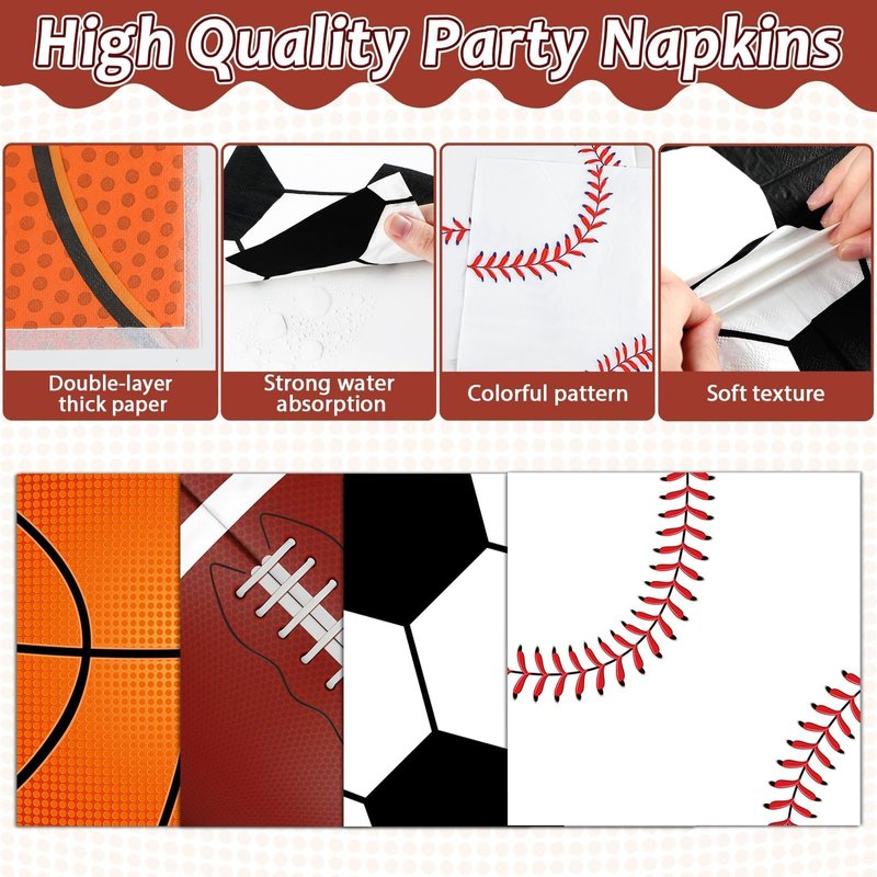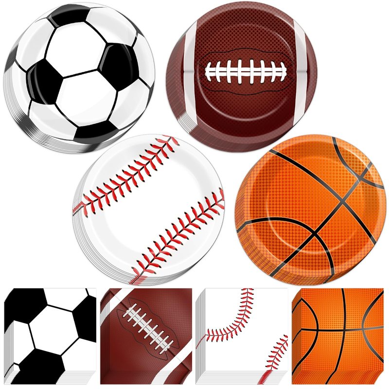 - Package content: Total 96pcs you will receive, serves up to 48pcs 7 inch sports themed party dinner plates, 48pcs 6.5 inch sports napkins all in 4 styles, ensures that you have everything you need to create a great atmosphere that will leave a lasting impression.