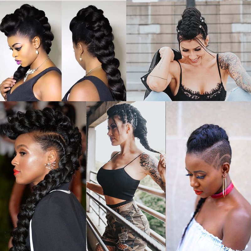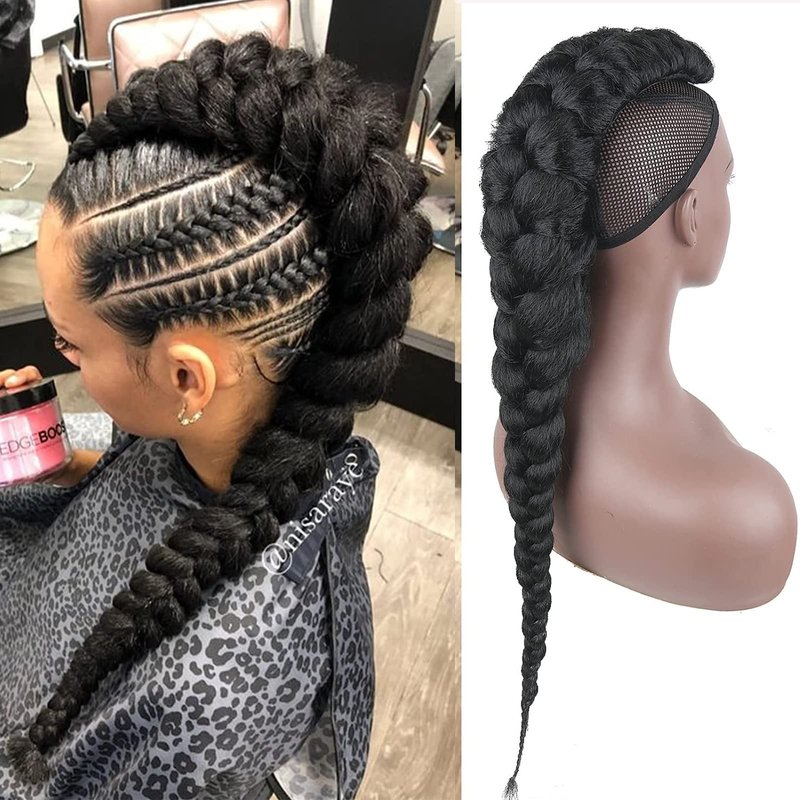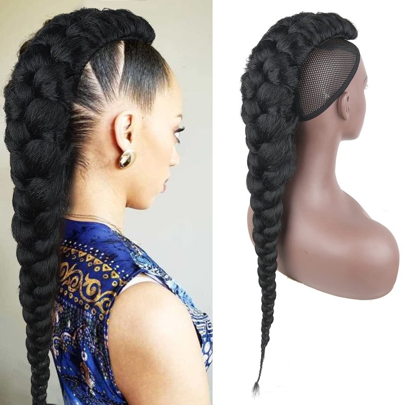 - Braided Ponytail:The braided ponytail is an edgy and cool hair trend. This mohawk ponytail without shaving your hair. inspired by thick braids and Fauxhawks Ponytail, You can wear a mohawk braid boldly. Get gorgeous in a snap with a jumbo braid ponytail. show your personality, easy to secure, makes your hair more realistic.
