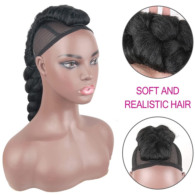 - Size and Length:The long fishtail braid goddess yaki ponytail extension is 26inch, Hair color:1B# 1B/BUG for relaxing your hair by adding this ponytail extension. Easy to Attach&2 Fixed Clips: The fauxhawk braid ponytail hairpiece has two windproof combs and five BB clips inside to help you better fix the wig, not easy to fall off.