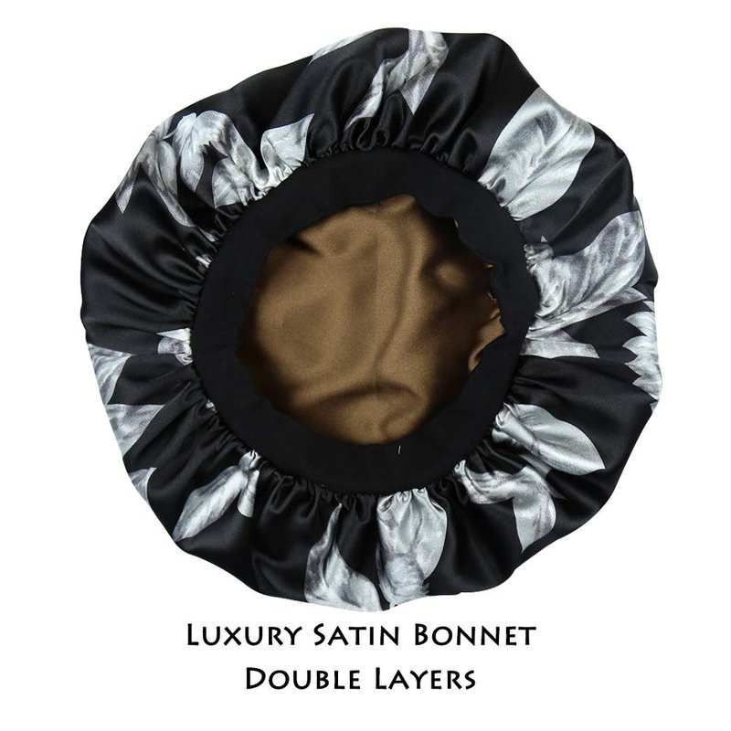 This double-layered satin bonnet is more smooth and softer than single-layered satin sleeping cap.