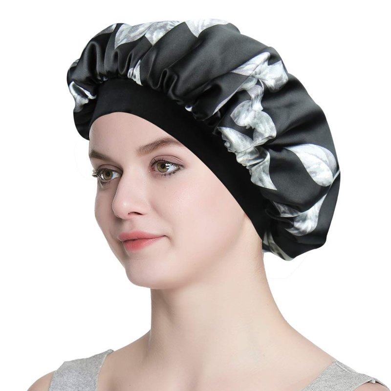- DOUBLE-LAYERED SILKY SATIN. Reversible and Versatile. This night cap reduces friction unlike previous single-layered satin cap having rough lining without satin lined.Two options for you.You can wear fashionable printed satin inside or simple dyed satin inside.Both layers are silky satin fabric.This product can be worn not only during sleep,but also for makeup, bathing,or even doing the housework.It is really convenient in daily use.