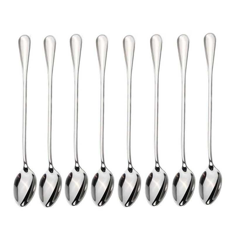 Long-handled ice tea spoon, cocktail stir spoons, stainless steel coffee spoons, ice cream scoop Set of 8