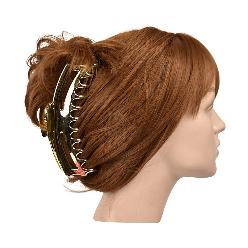 This is a great extra large hair clip. It has a stylish edge and fits a large amount of hair. The hair clip measures 5.5 inches wide and 2.5 inches tall. Look great on!
