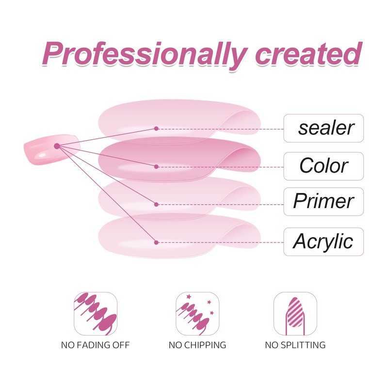 2.Keep away from water for 1 hour after applying fake nails.Please do not leave the acrylic nails in water for a long time, it will make the nails fall off easily.