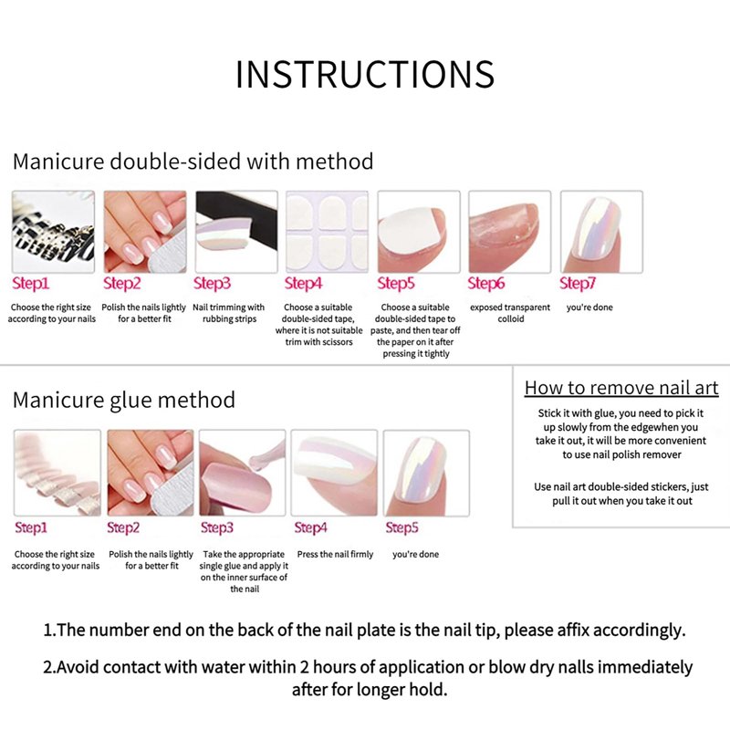 3.Please note that the nail glue is not included.If you want it last for a longer time,please use nail glue instead of the jelly glue stickers.