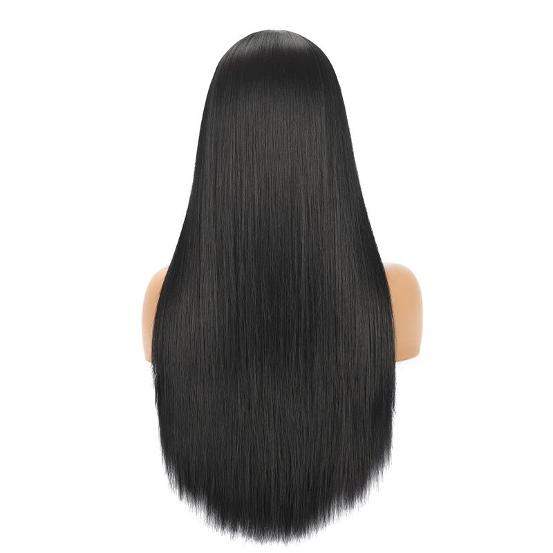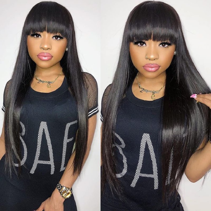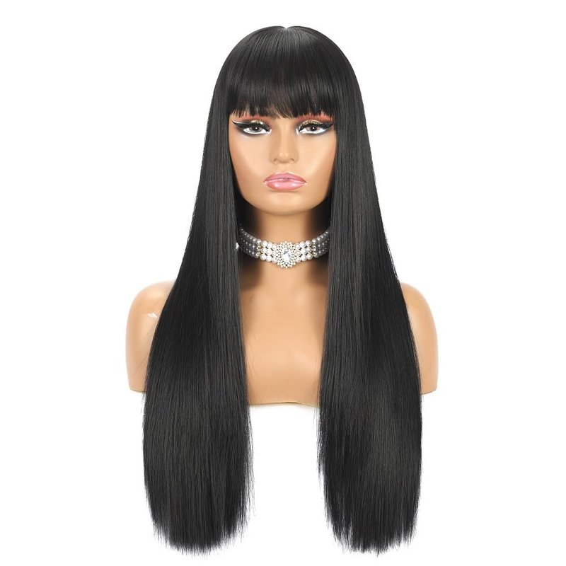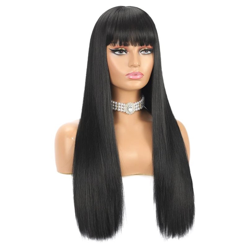 - Hairstyle: 24 Inch long wigs with bangs. Natural black wigs, bangs can be parted or trimmed to suit ur makeup. Fashion silky soft straight texture, look full but feel light when u wear it.