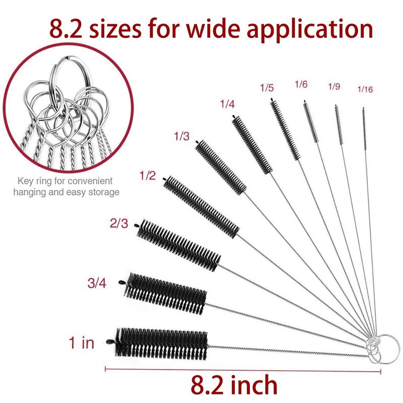 Long Straw Brush, Nylon Pipe Tube Cleaner 8.2-ihch 10 Different Diameters Set of 10