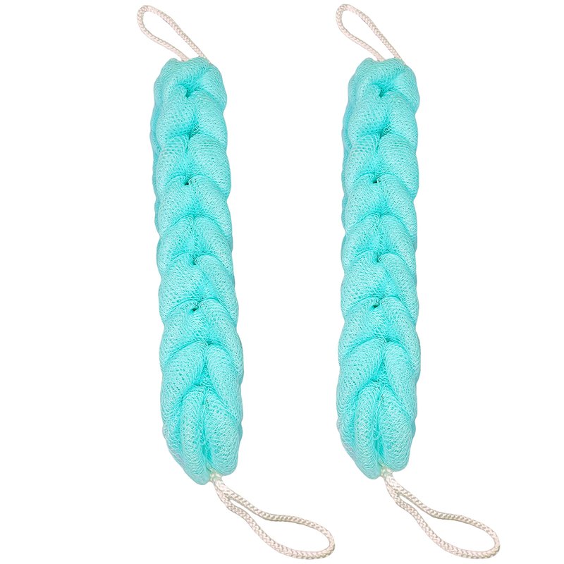 Long Stretch Back Sponge with Rope Handles Back Scrubber Bath Shower Mesh Sponge Exfoliating Body Scrub Stretch Braided Loofah for Men and Women(2-Pack,Green)