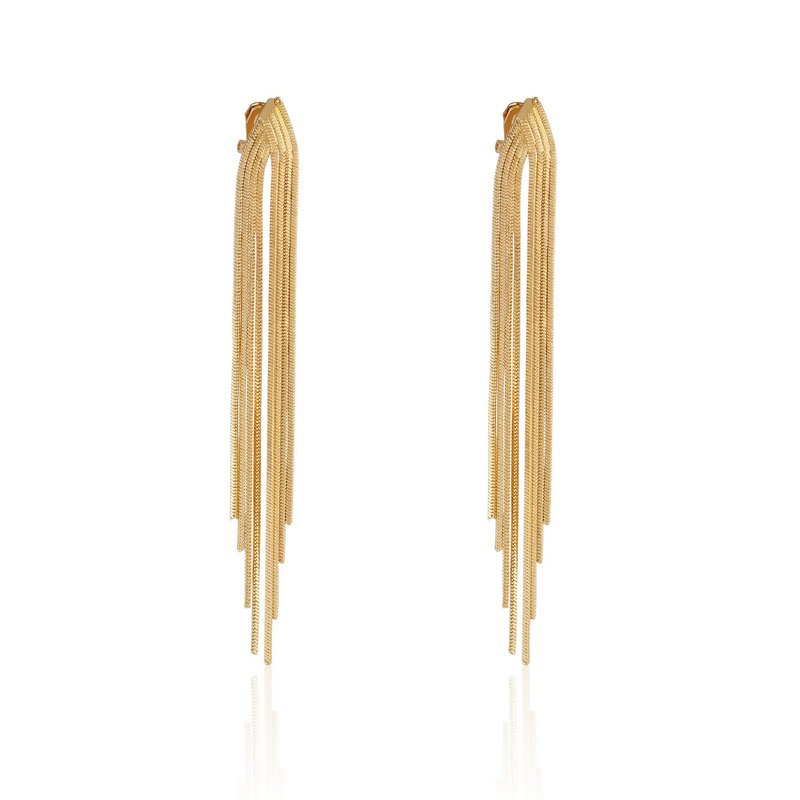 Long Tassel Clip On Dangle Earrings Gold Punk Sleek Metal Chain Clip Earrings Statement Wedding Bridesmaid Jewelry