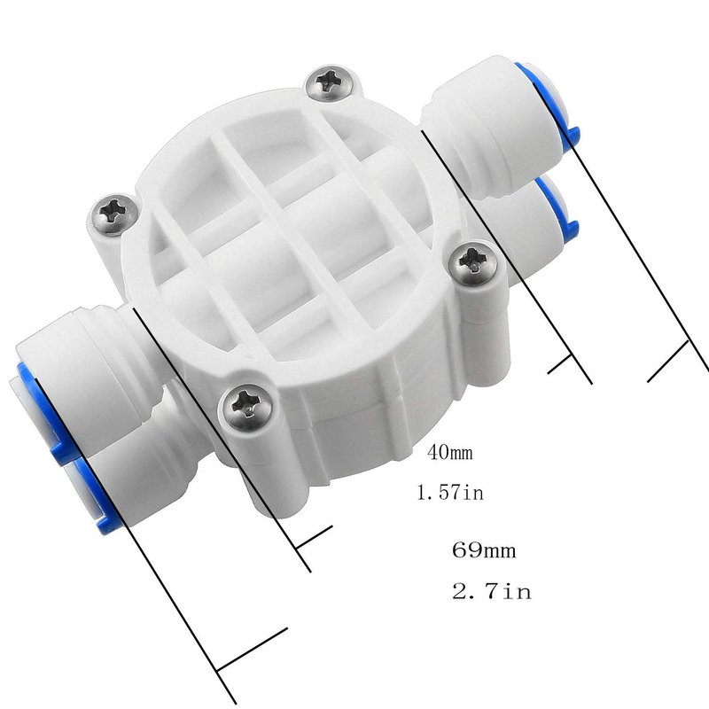 - Automatic shut-off valve with Quick Connect Fittings for reverse osmosis systems.