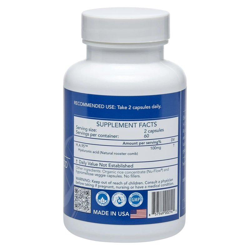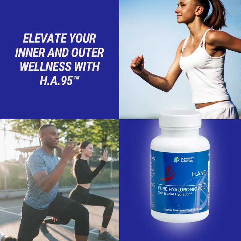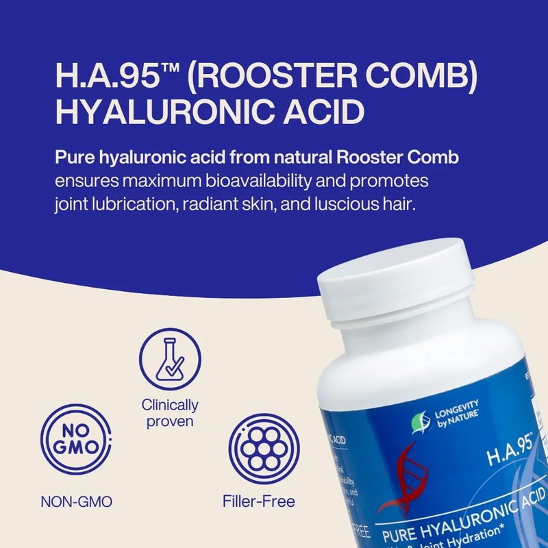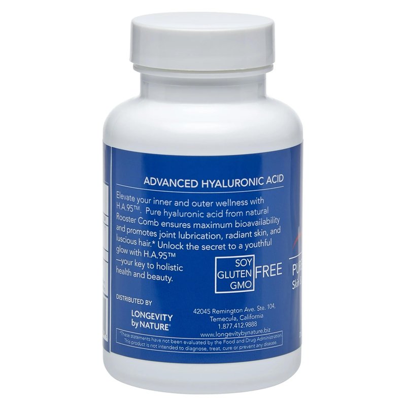 Longevity by Nature H.A.95 Hyaluronic Acid Supplements, Antioxidant, Skin Hydration, Eye, Joint, Natural Rooster Comb, 60 Capsules