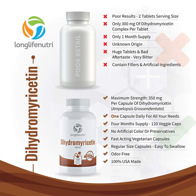 - ✔ Backed by LongLifeNutri Lifetime Money-back Guarantee: We only develop products that were carefully tested - Buy the best with confidence - Love our Dihydromyrecetin or get every penny back, no questions asked, it's that easy.