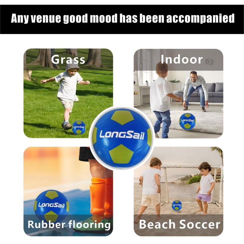 - OFFICIAL SIZE 3/4/5 SOCCER:The Longsail soccer foam rubber soccer balls are made of high quality material.Pamper the feet of children ages 3 and up and allow these little athletes to enjoy fun and safe playtime as they develop their skills.It is also particularly beneficial for youth and adult in training and competition, helping to develop dribbling, passing and shooting, which can better help you improve your skills and consistent play.