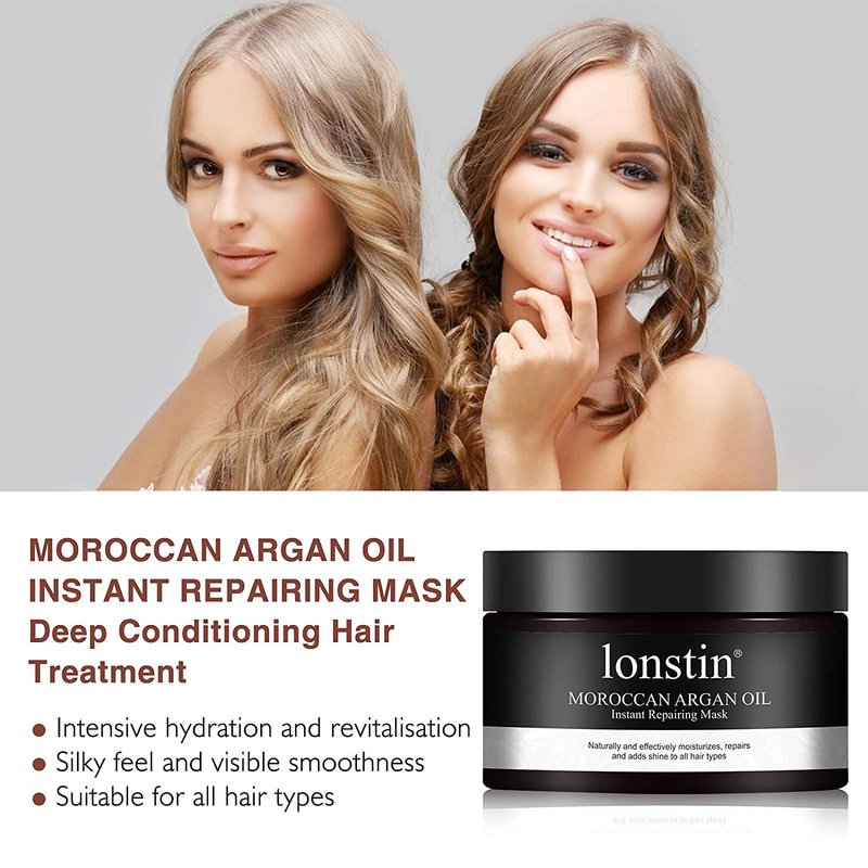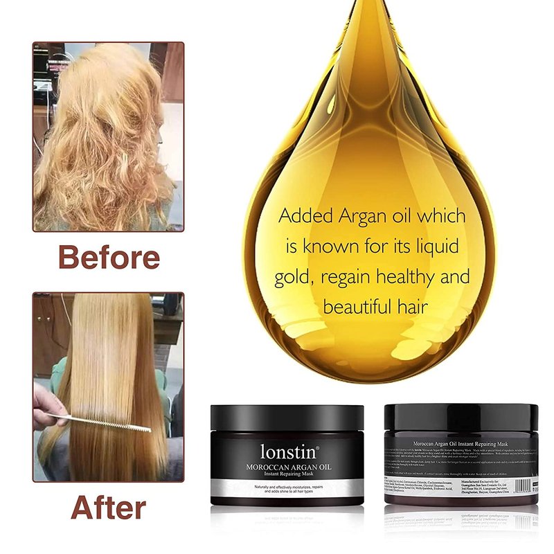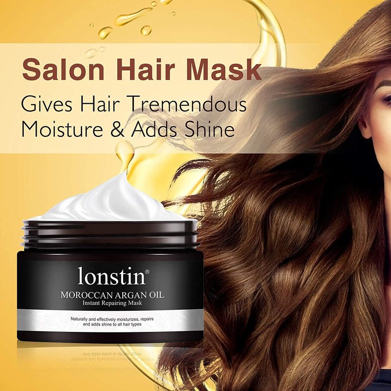 lonstin Hair Treatment Mask, Argan Oil Hair Mask Deep Conditioner Keratin Hair Mask Treatment for Dry Damaged Hair, Anti-Frizz & Split Ends, Hydrating Hair Repair Mask for Men Women, 10.14 Fl Oz