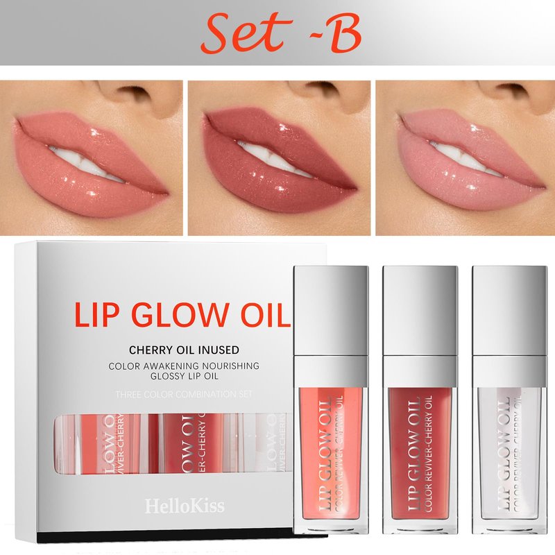 Loobexery 3 Color Plumping Lip Oil, 3-IN-1 Hydrating Lip Gloss Tinted Lip Balm Transparent Toot Lip Oil, Big Brush Head Glitter Shine Long Lasting Moisturizing Lip Glow Oil Nourishing Non-sticky (B#)