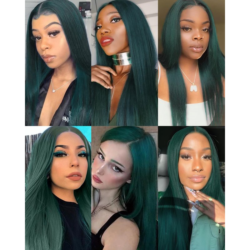 Looxey 13x6 Lace Front Wigs Synthetic 24 Inch Long Straight Wigs Pre Plucked Green Lace Frontal Wigs Glueless Wigs for Women Girls Daily Wear