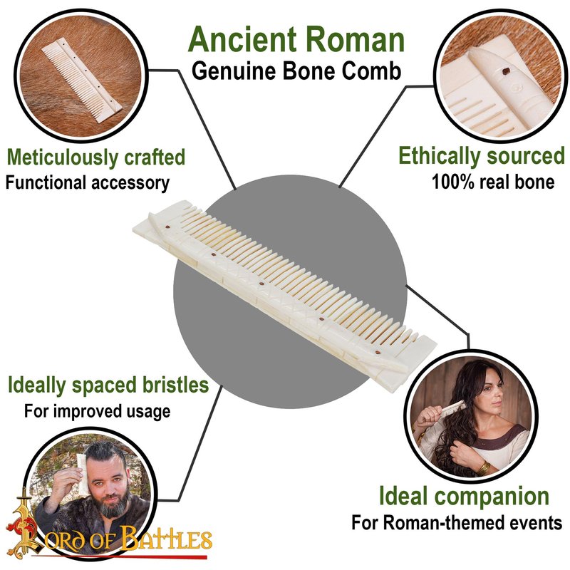 - Made from ethically sourced bone, this handcrafted comb is built with historicity in mind. At around 15 cm long and 3.8 cm wide, it is anti-static, a property that makes it even more comfortable to use. Perfect for medieval enthusiasts or anyone who loves unique and functional accessories, this comb also makes a fantastic gift! ..