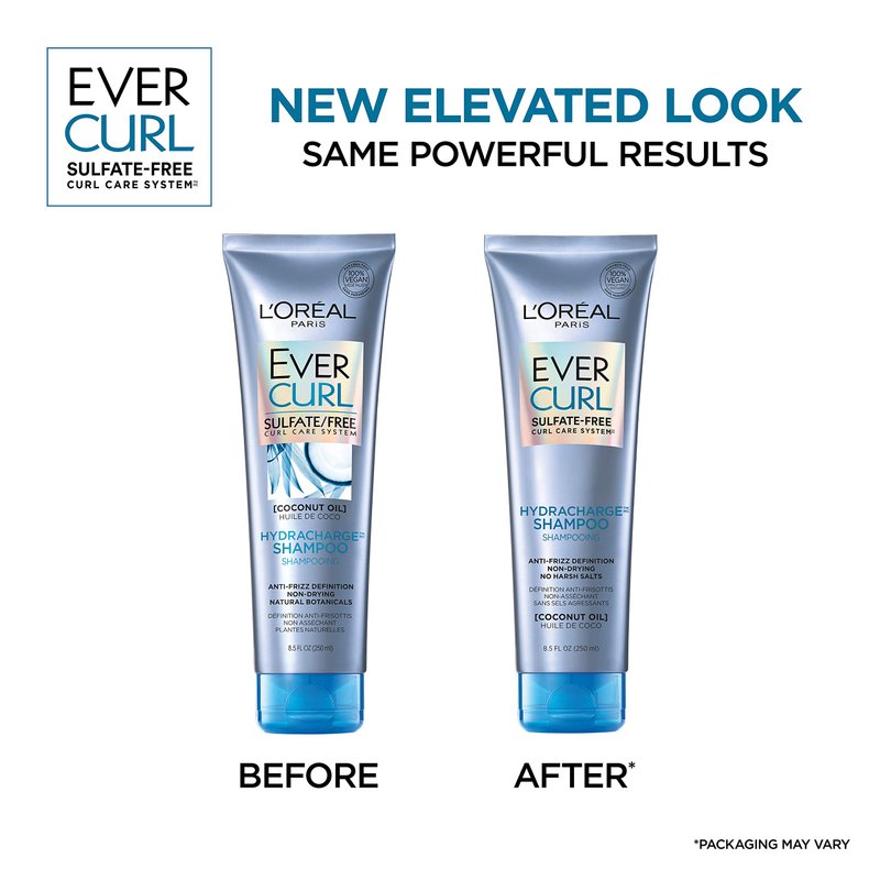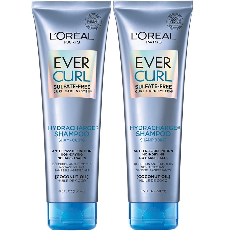 L'Oreal Paris EverCurl Sulfate Free Shampoo for Curly Hair, Lightweight, Anti-Frizz Hydration, Gentle on Curls, with Coconut Oil, 2 Count (8.5 Fl; Oz each) (Packaging May Vary)
