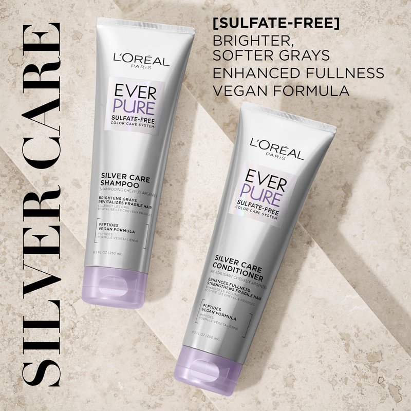 L'Oreal Paris EverPure Silver Care Sulfate Free Shampoo and Conditioner Set, Nourishing Vegan Formula with Peptides for Brightening Gray Hair, 1 Kit
