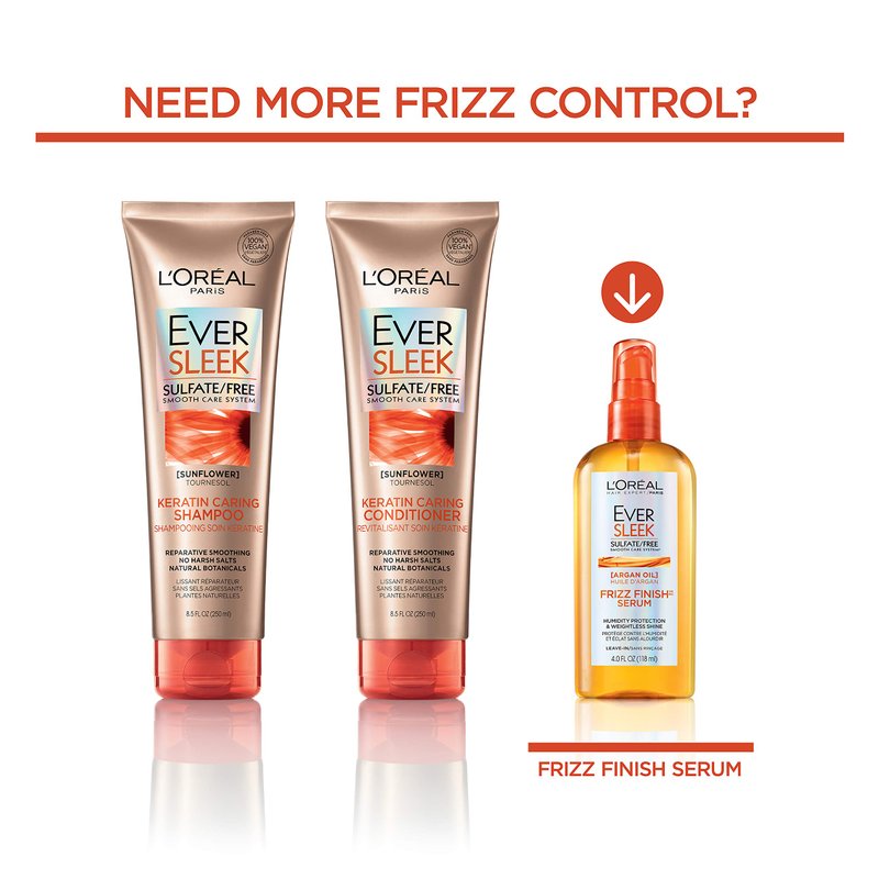 L'Oreal Paris Hair Care EverSleek Keratin Caring Shampoo, with Sunflower Oil, 2 Count (8.5 Fl; Oz each)